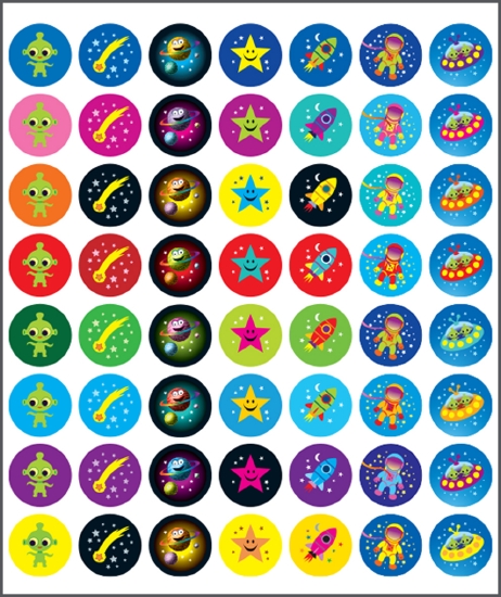 Motivate and reward your students with this bumper pack of mini space-age stickers!