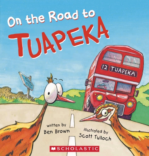 Heka and Reka (both weka) catch a double-decker to Tuapeka! The two weka friends catch Possum Pete's double-decker bus on the road to Tuapeka ...and along the way they pick up Hedgy Hog, Dodgy Dog and Whistling Frog. But when a strange little man in a caravan invites them to share his barbecue - they soon realise they are to BE the barbecue, and skedaddle ...all the way to Tuapeka.