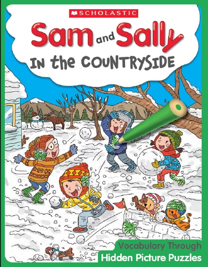 Sam and Sally provides hours of engagement and fun with carefully designed hidden picture puzzles that enable the child to effectively learn vocabulary in context. In addition, a thoughtful question in each puzzle encourages the child to think further about the picture and to articulate his thoughts. As children search for and color the hidden pictures, they will: • learn words relevant to their world in engaging contexts; • practice visual discrimination skills that develop their spatial intelligence; • build fine motor skills 28 Thematic Picture Puzzles with over 200 words 9 two-page challenge puzzles to extend visual discrimination skills and consolidate words learned
